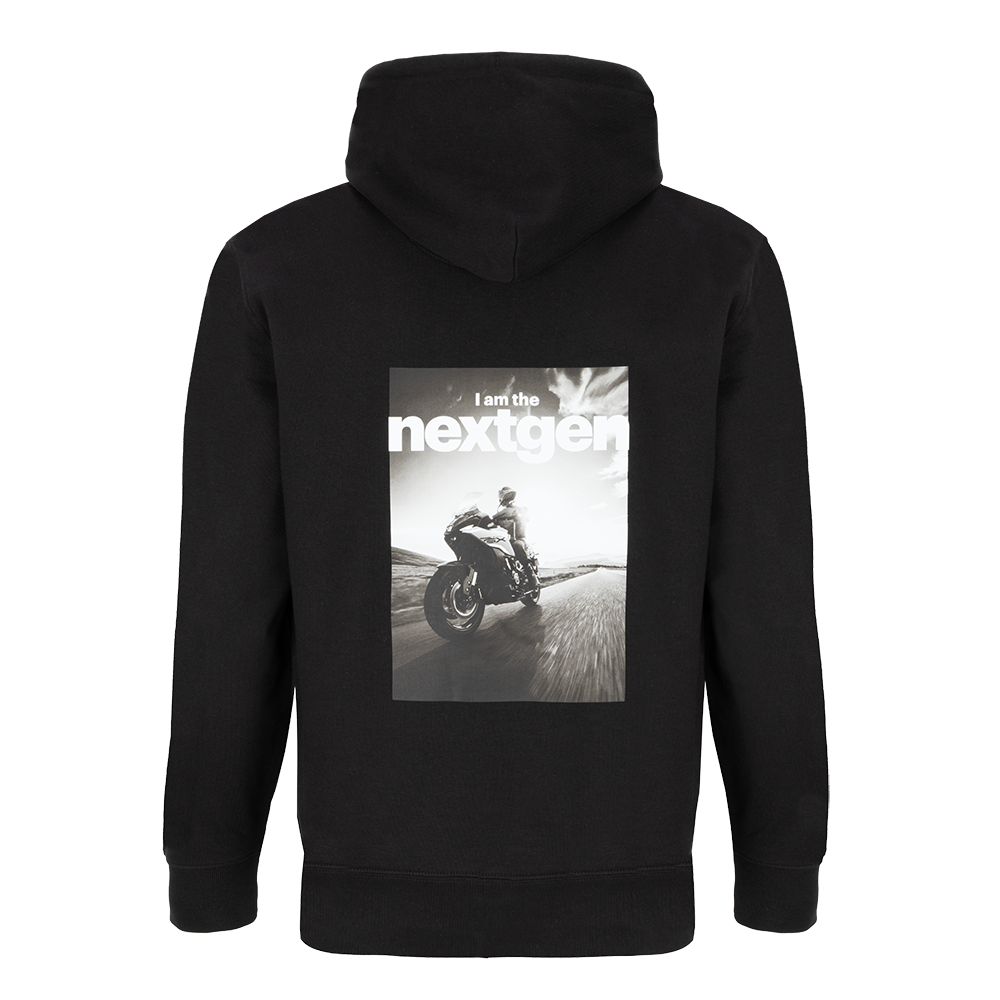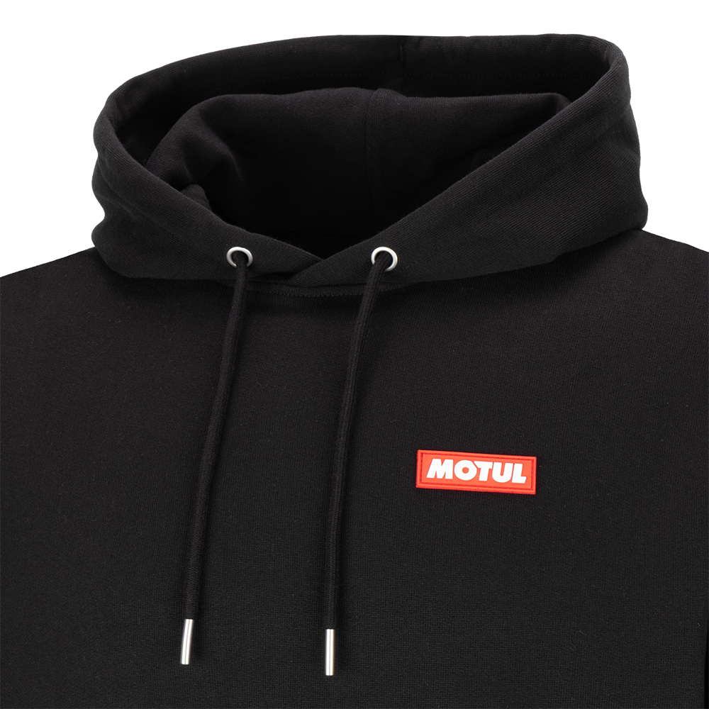 A cosy black everyday hoodie with a printed NextGen design to the back and a Motul logo rubber patch to the front.