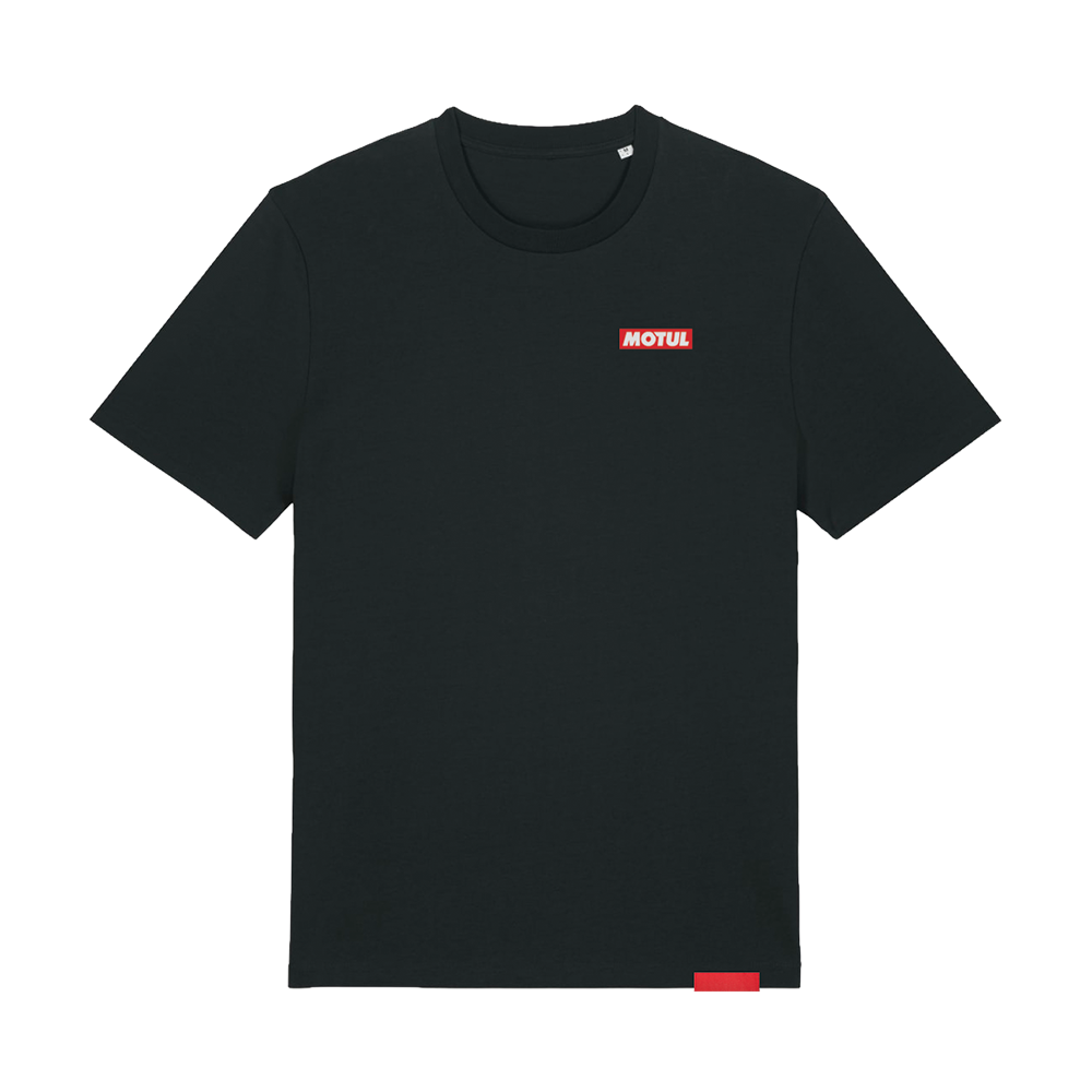 A comfortable black cotton crewneck with the Motul logo to the left chest and a pattern design to the back, perfect for everyday wear.